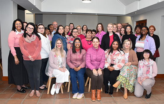Maandag 6 Oktober het die kollegas pienk aangeheg as deel van kankerbewustheid. Die personeel het ook die res van die week pienk lintjies gedra om te wys dat ons empatie het met persone wat ‘n stryd teen kanker voer.